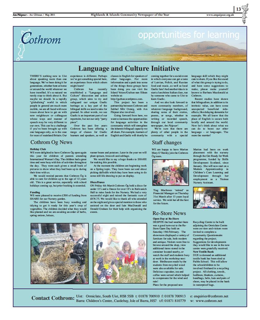 He has a wealth of international experience in relation to bilingualism in education, and was visiting Uist in his advisory capacity to the small research project being conducted here. During his stay he was able, among other things, to visit the offices of Am Pàipear in Balivanich, and to meet some members of Cothrom’s new Language and Culture group who gather on a Monday afternoon to learn Italian together.
