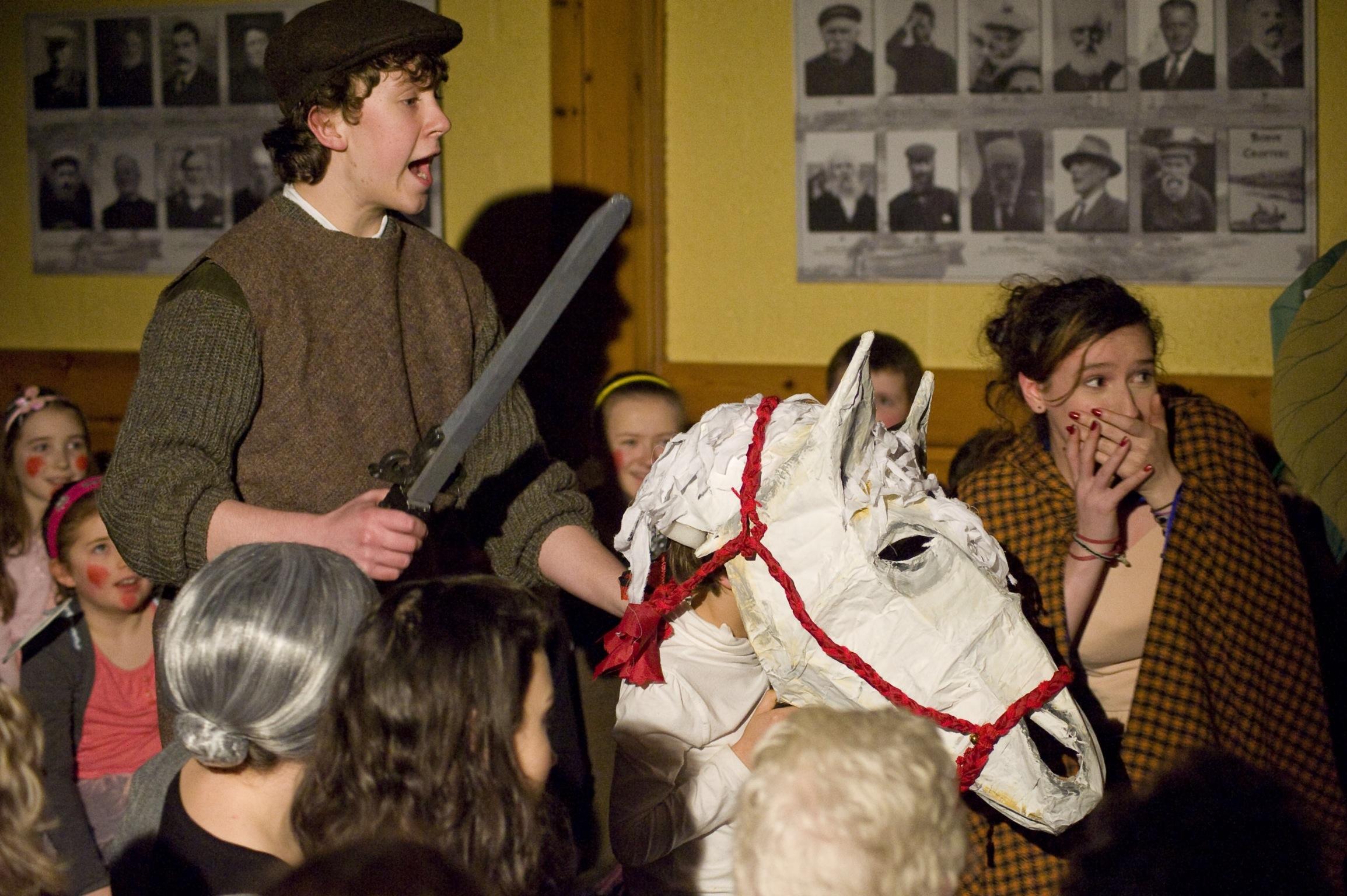 English tutor Mary Morrison and Gaelic tutor Archie Campbell put on scriptwriting hats recently in a remarkable collaboration that saw cross-community involvement in the staging of a traditional tale – Gille an Fheadain Duibh (The Lad with the Black Chanter).