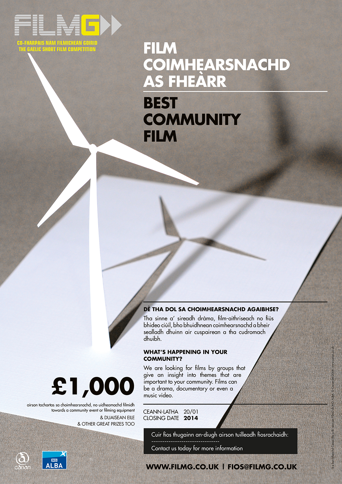 If any Uibhistich are interested in making a film for the community category, but feel they would like some support, they are welcome to get in touch with us here at Guthan nan Eilean/Island Voices to see how we might help. Call or text Gordon Wells on 07879 644984.