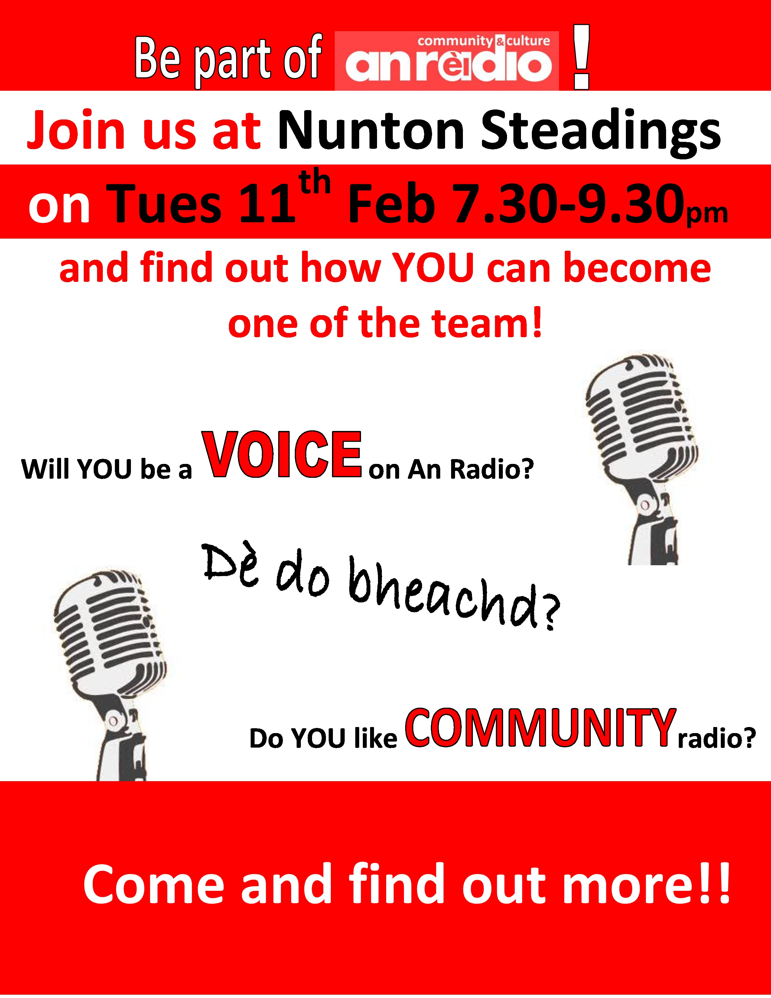 Meanwhile, and for one day only, An Radio, the new bilingual Uist community station, will be running specially themed playlists all day today. Just follow this link and click on the “An Radio Player”. Wherever you are, and whichever languages you like to use, Island Voices wishes you all a Happy Valentine’s Day!