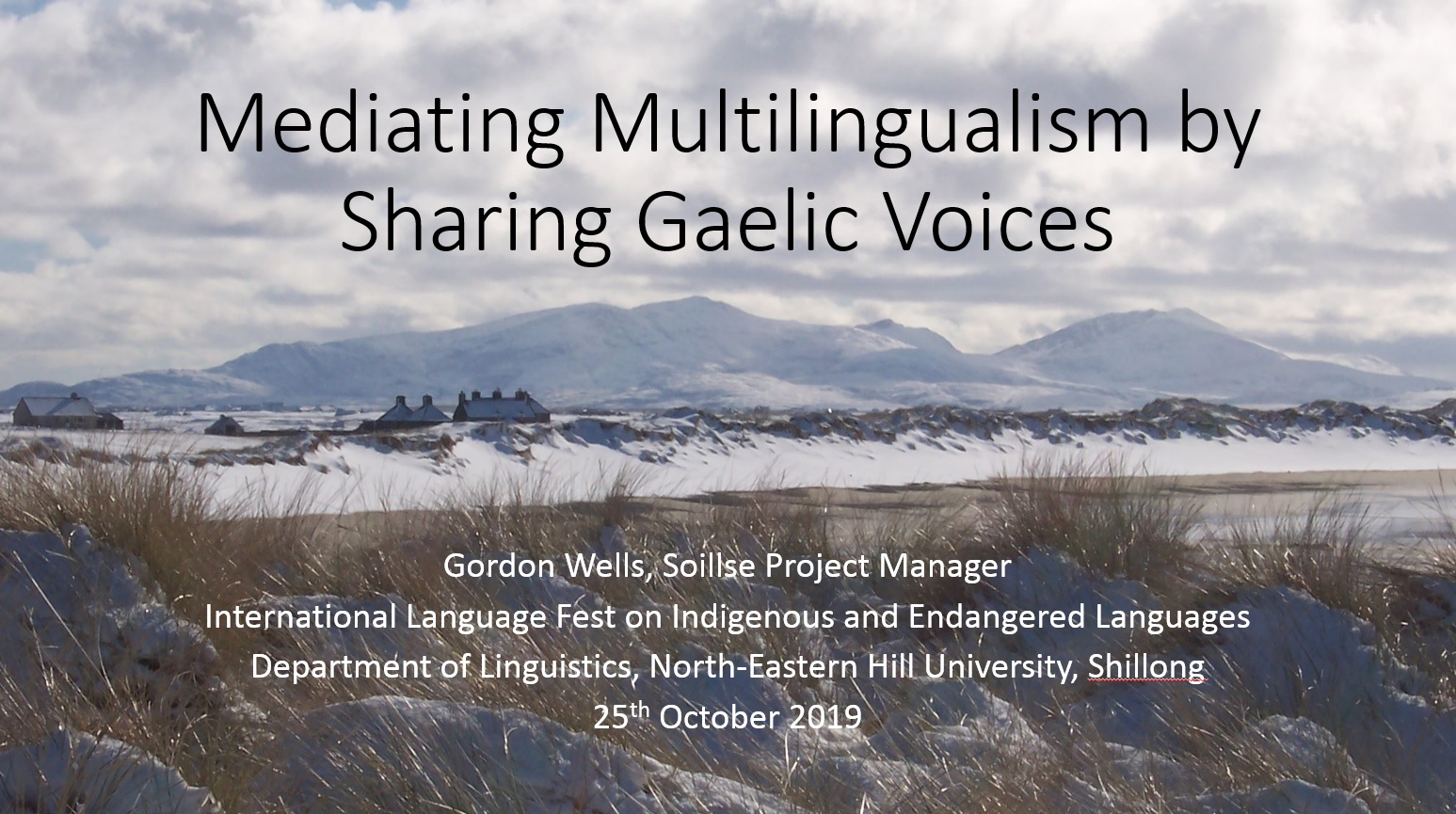 Gordon Wells took his camera with him for the Soillse Gaelic research network, and recorded some highlights for the wider “Mediating Multilingualism” project which is being led by the UHI Languages Sciences Institute, funded by the Global Challenges Research Fund. The resulting film, which references Island Voices in several places, has already been uploaded onto the LSI and Soillse websites, and can now also be viewed here. The film, presented in Gaelic and subtitled in English, is in fact multilingual, with the number of languages included well into double figures.