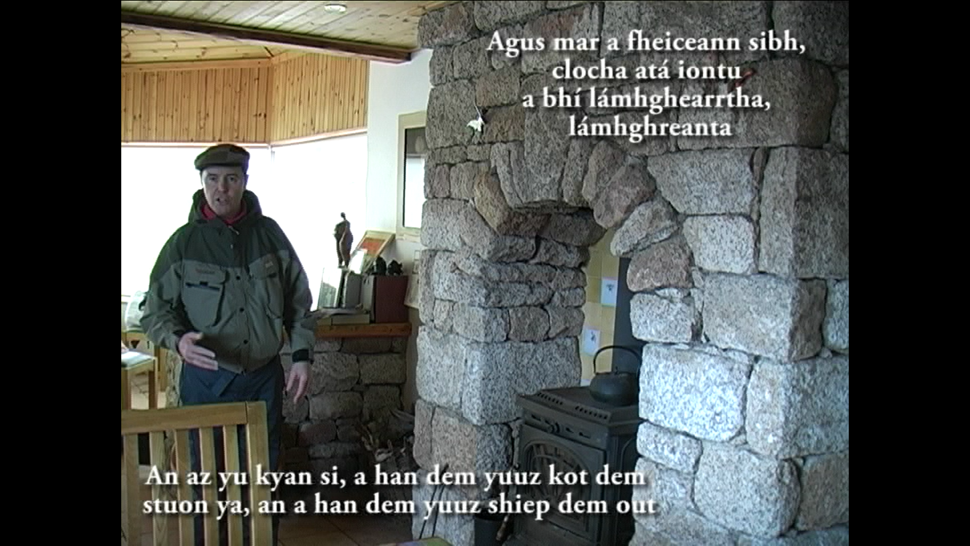 “Winta jos a ton ina spring ina di Outer Hebrides, we de pan Scotland wes kuos. Di priti plies dem mek yu memba se dem ailan ya suun fulop a piipl we lef dem yaad an kom pan alidie ina di at mont dem we suun riich, bot rait ya nou wan gruup a luokal piipl a go pan a chrip pan di Naatwes kuos a Ireland. Bak ina di diez, dem wuda chavl bai waata an wuda go fram ailan tu ailan ina dis lang schring a komyuuniti we piipl ongl chat Gaelic. Bot nou-a-diez Benbecula ierpuot gi piipl wan iiziya an muo komfatebl wie fi go bout dem bizniz…” (