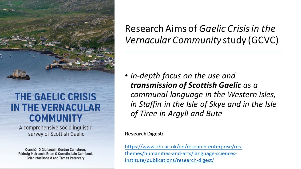 Following on from the May launch of the Aire air Sunnd project with Comann Eachdraidh Uibhist a Tuath, the first online session of the Gaelic-focussed strand was held on 17th June. As planned, the “hybrid” session was open to participation by Zoom as well as physical attendance at Sgoil Chàirinis, with Ùisdean Robertson taking the chair. The session started with a presentation by members of the research team behind the publication of “The Gaelic Crisis in the Vernacular Community“, principally Iain Caimbeul with support from Conchúr Ó Giollagáin. This presentation was recorded and has now been placed on the Island Voices YouTube channel. You can view it here: