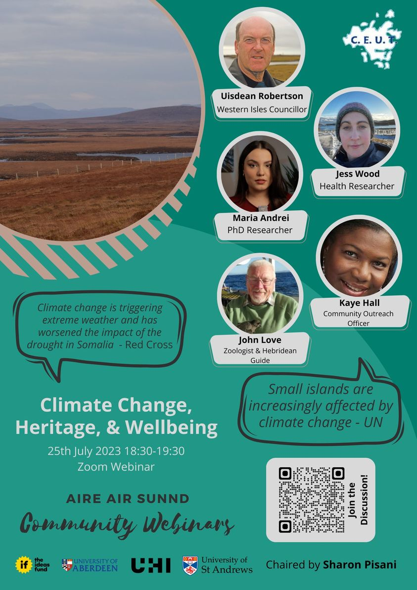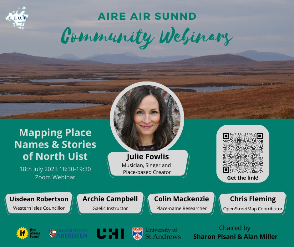 In the second Aire Air Sunnd July webinar a fresh panel discusses “Climate Change, Heritage, and Wellbeing”. This follows on from the previous week’s discussion of the not unrelated topic of Mapping Placenames & Stories of North Uist.